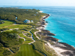 On the island of Great Abaco 160 nautical miles east of Florida and designed by architects Donald Steel and Tom Mackenzie, The Abaco Club is billed as a “tropical links,” and it does in fact feature some of the pot bunkering expected on the seaside courses of the British Isles. It is generally considered one of the best courses in The Bahamas, and it hosts the yearly Great Abaco Classic on the Korn Ferry tour.