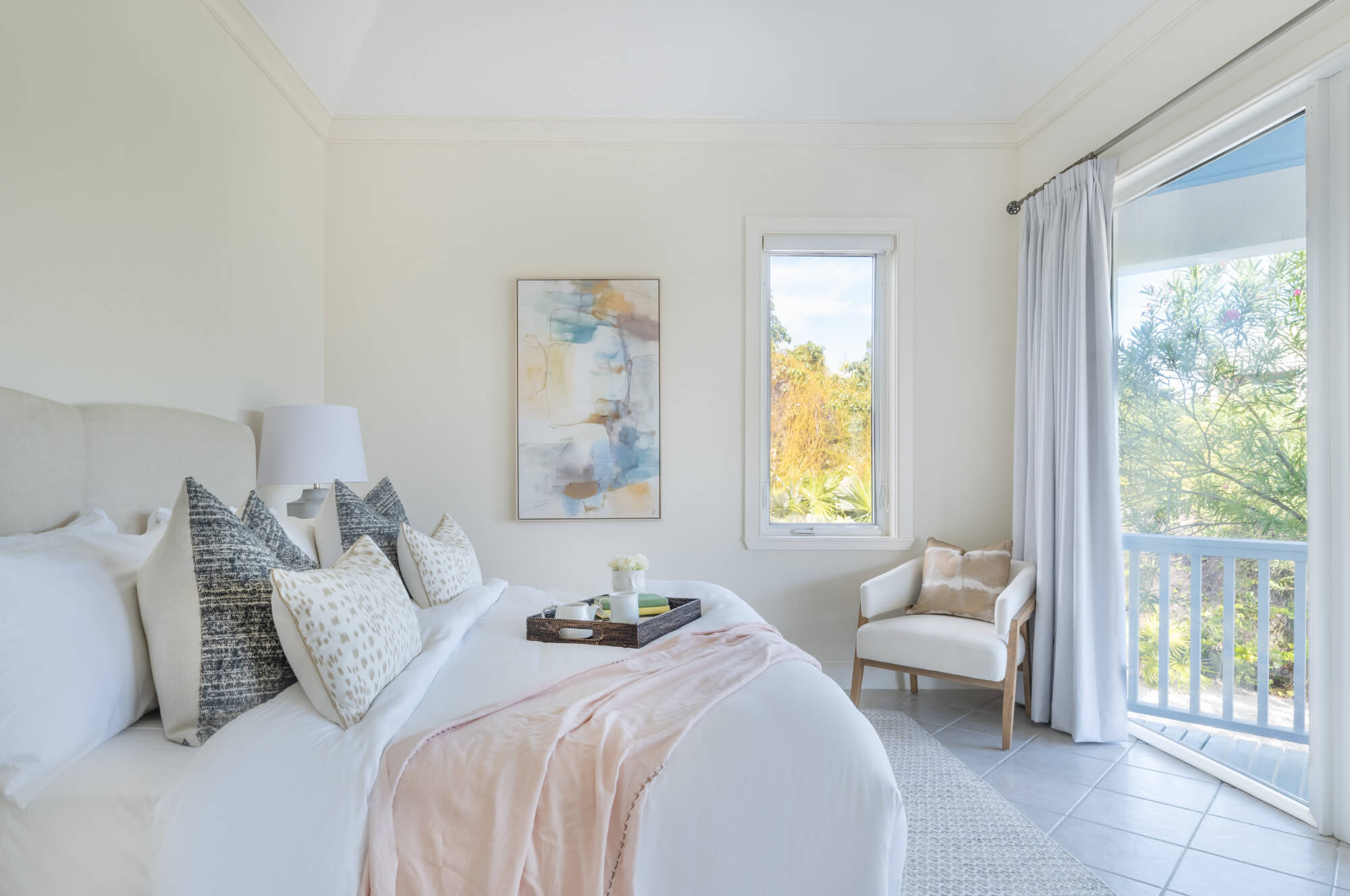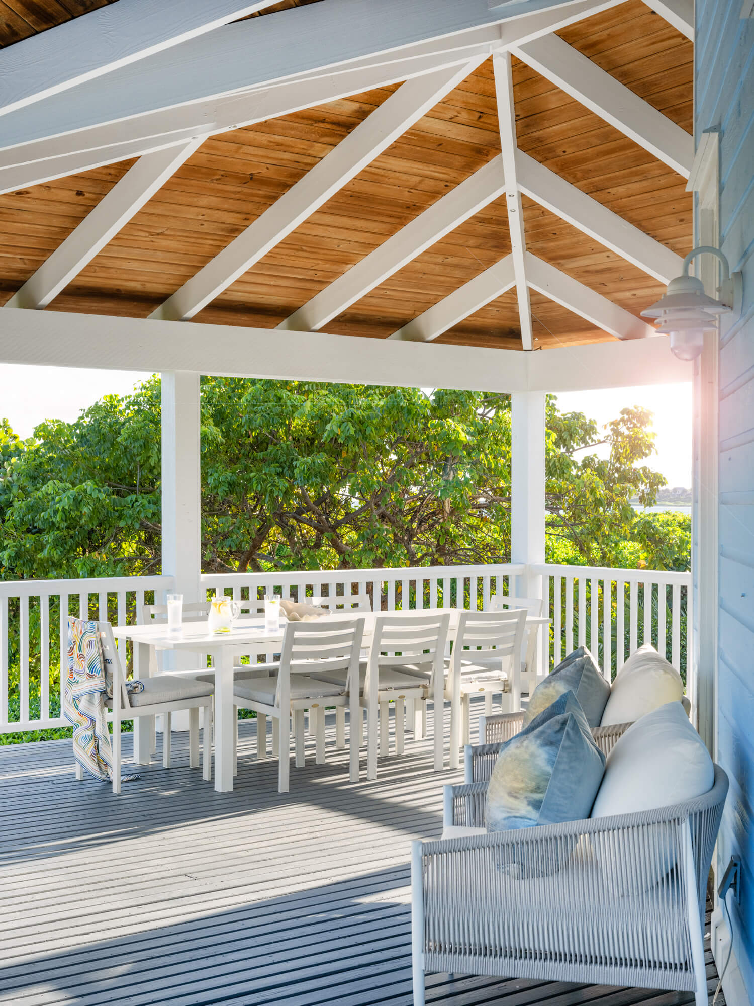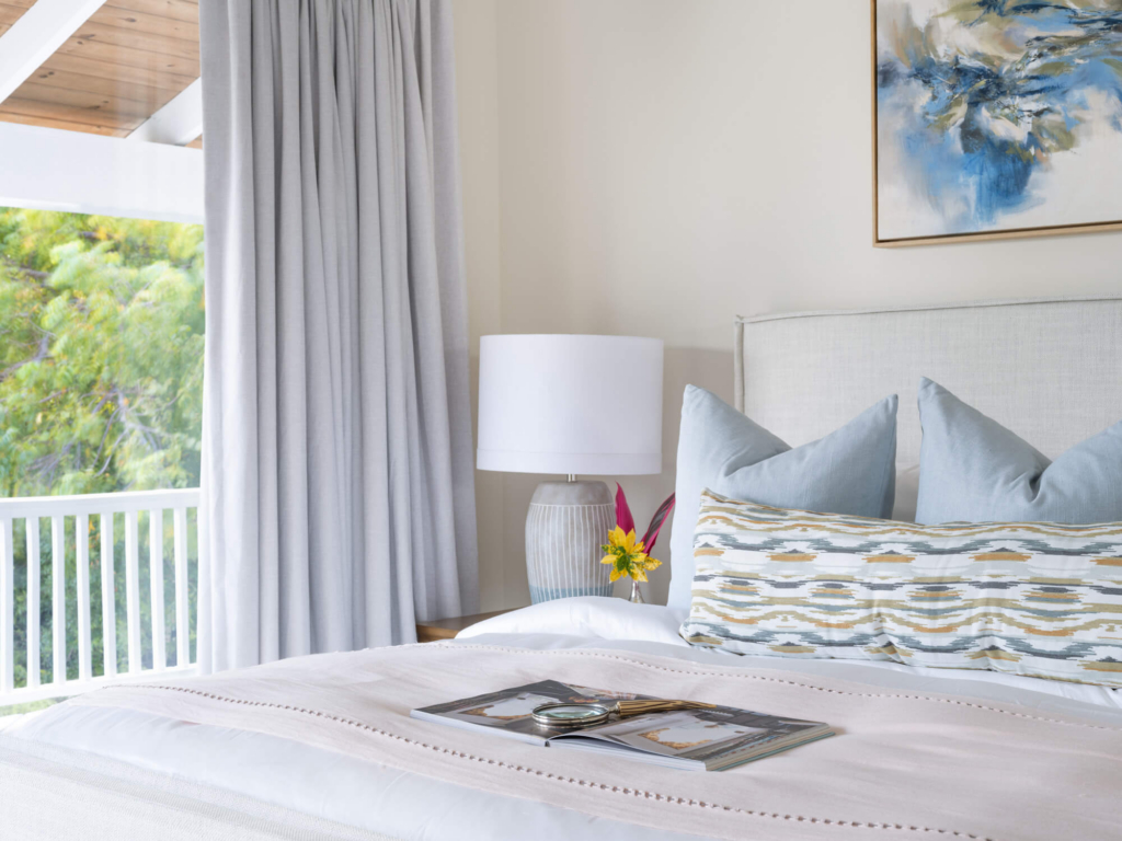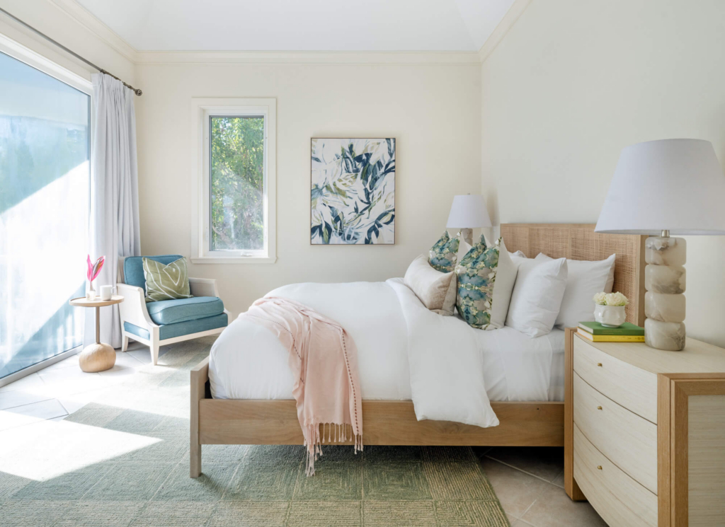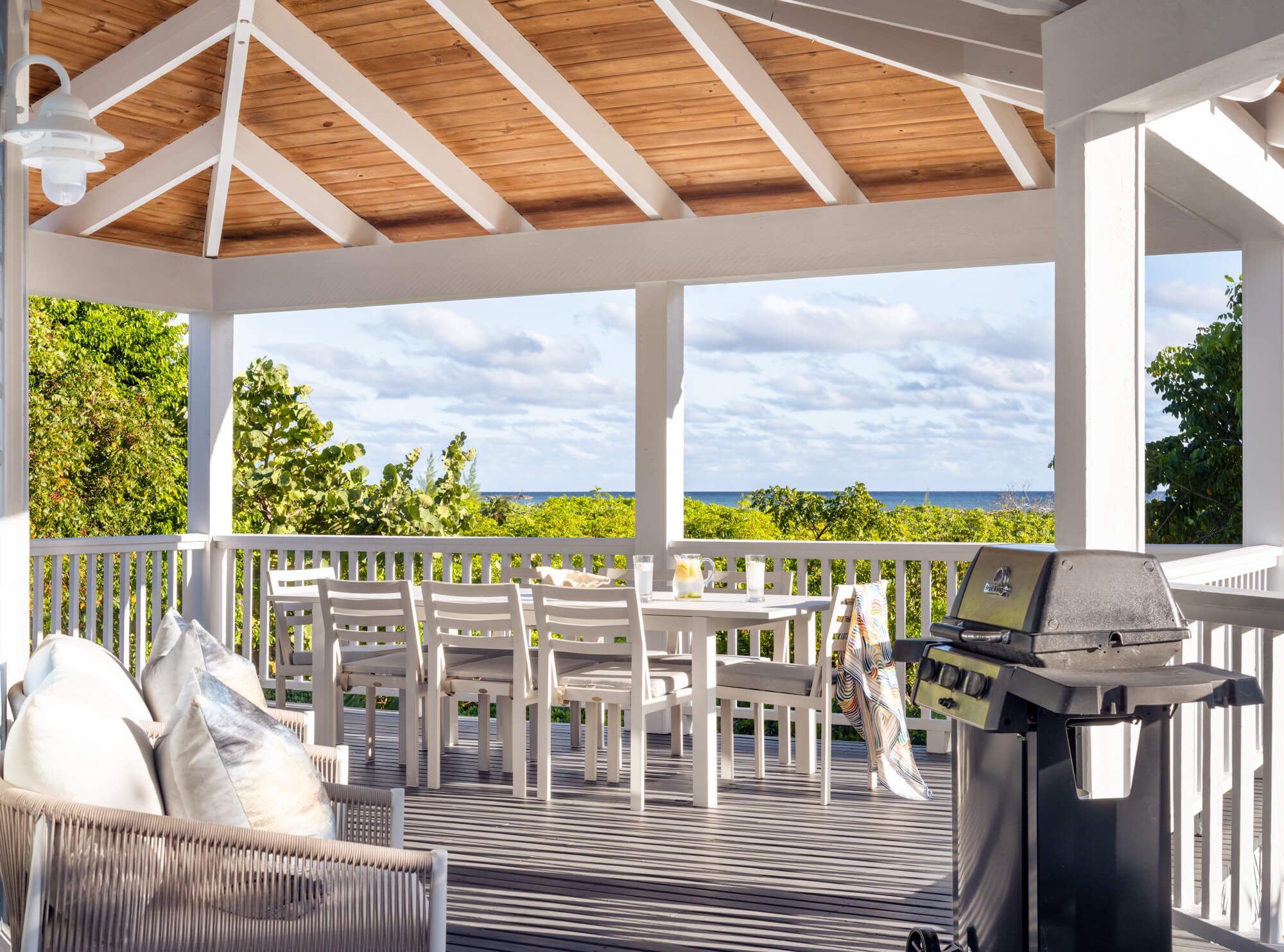 This upscale residence features four spacious bedrooms, each with its own en-suite bathroom, as well as a gourmet kitchen equipped with stainless steel appliances, custom cabinetry, and a generous island seating six. Adjacent to the kitchen, a large dining table comfortably accommodates up to ten guests. Outdoors, a grill, dining table, and ample seating make alfresco living irresistible.
