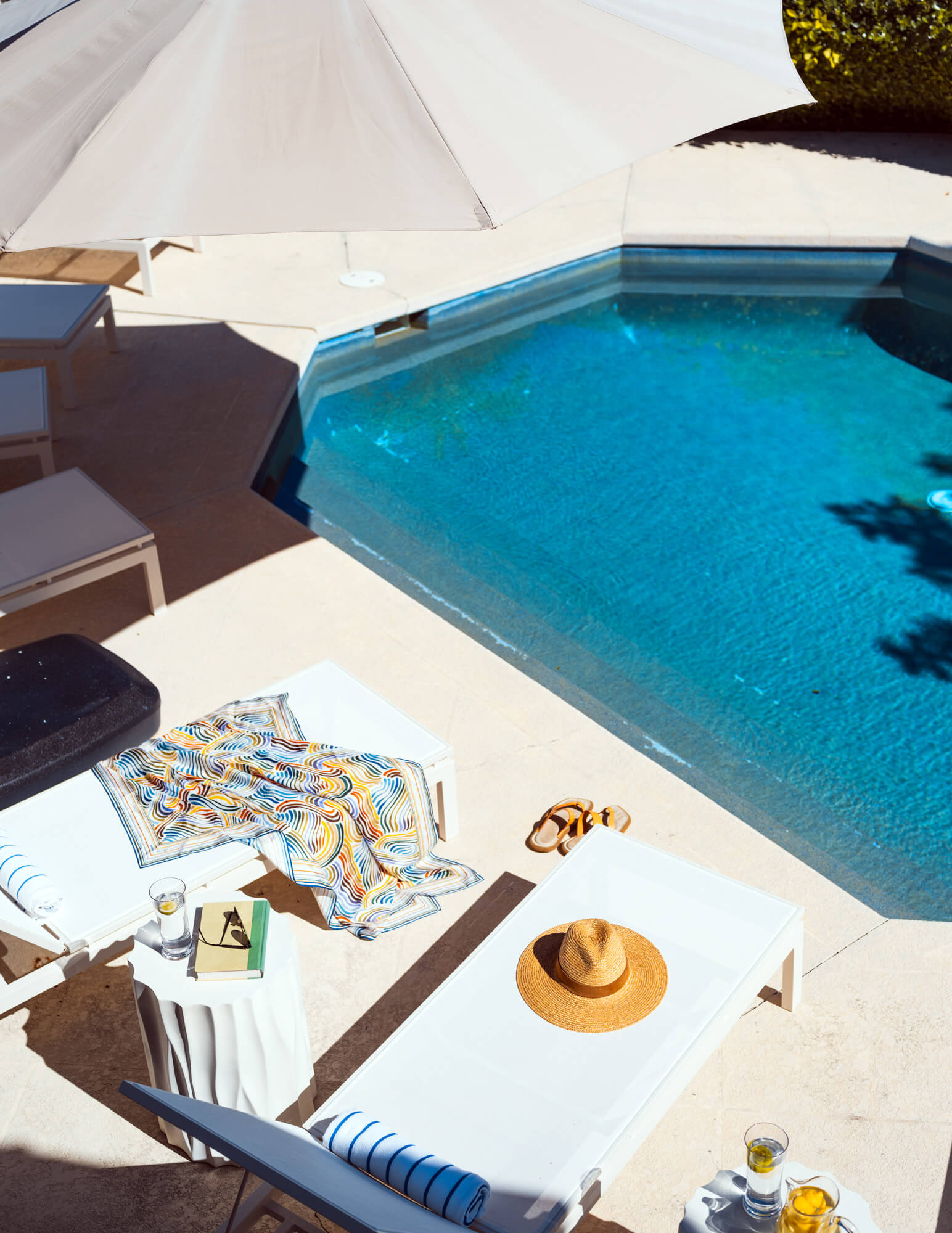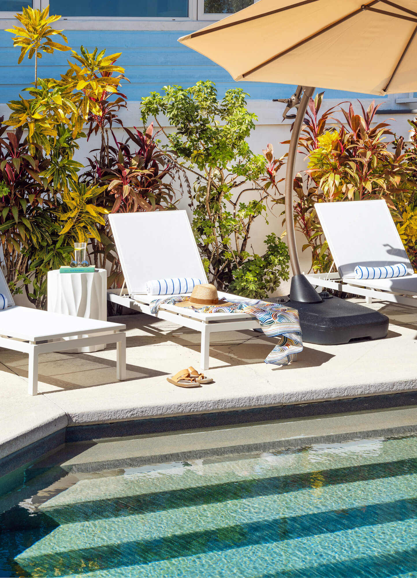 Beautifully landscaped gardens on either side of the driveway lead to Jumentos, a spectacular and luxurious beachfront estate with a private pool. Extensively covered decks extend from the great room, while each bedroom overlooks the pool and frames breathtaking views of the beach and the ocean beyond.