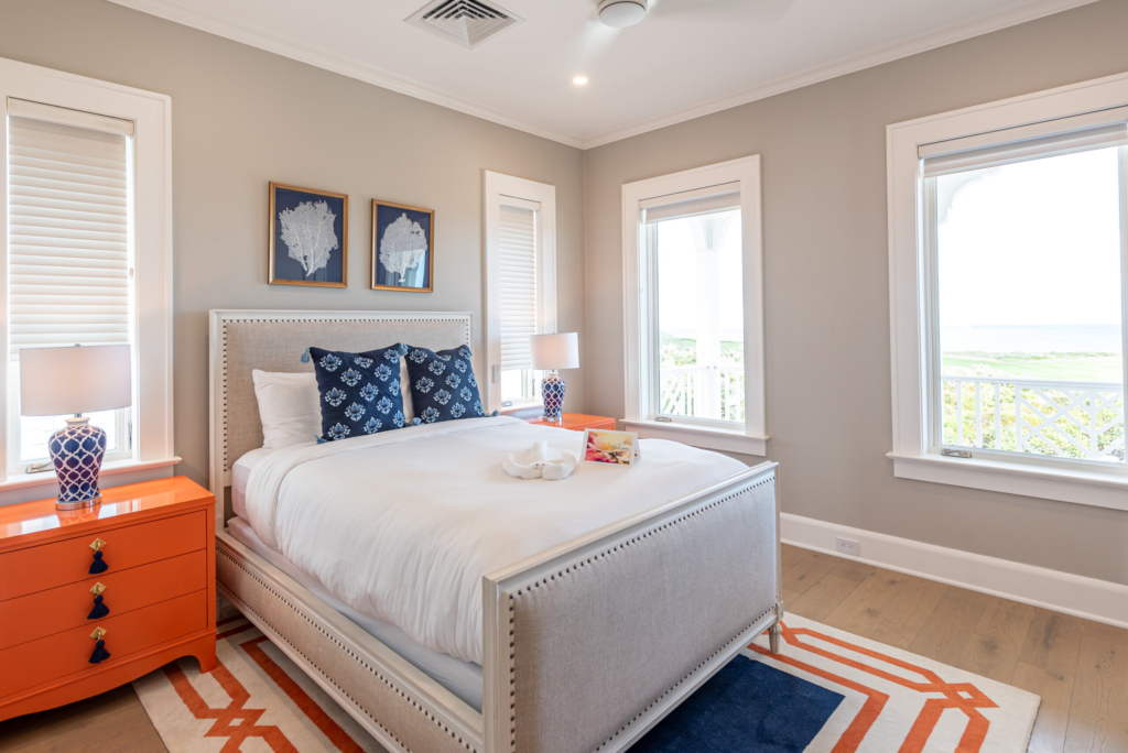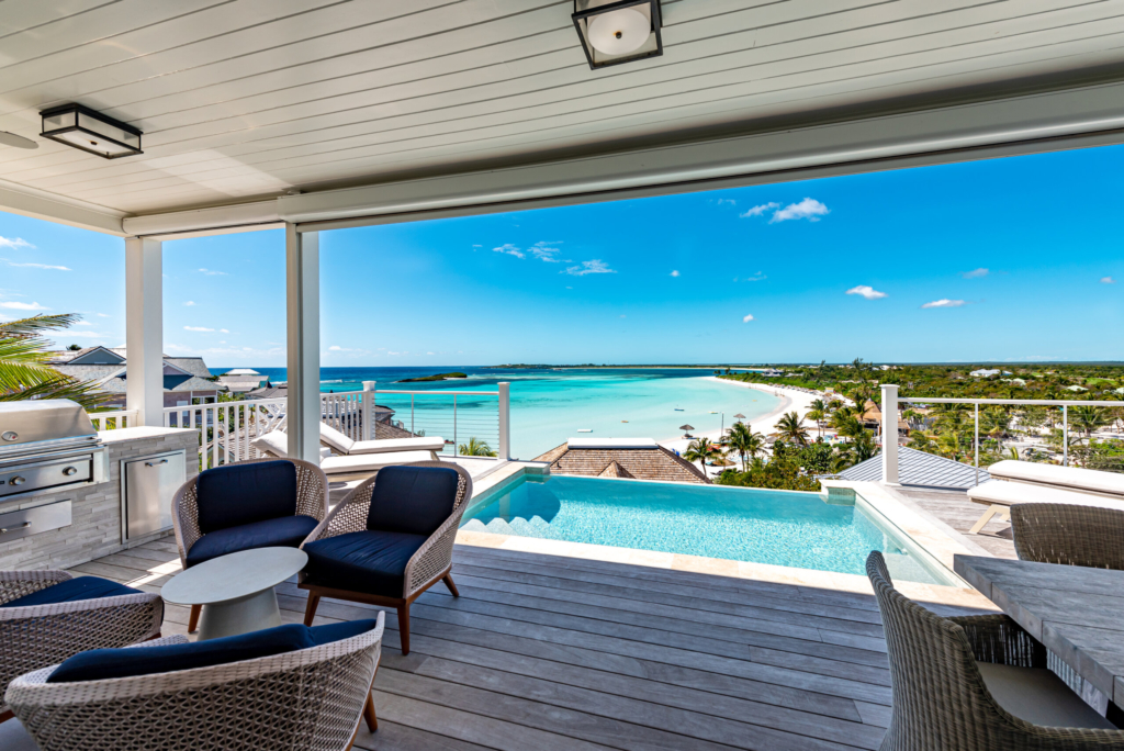 The Sunset residence is a stunning two-level option with a good balance of living and entertaining space. The front entry is spanned by a broad porch with two gracious guest suites just inside. The expansive, open concept kitchen, dining and living area is perfect for gathering, and full-height glass sliders open to allow a seamless flow onto the terrace where a plunge pool and outdoor kitchen await overlooking Winding Bay. Upstairs the primary suite, and a third guest suite share expansive terrace offering stunning views of the bay and daily sunsets.