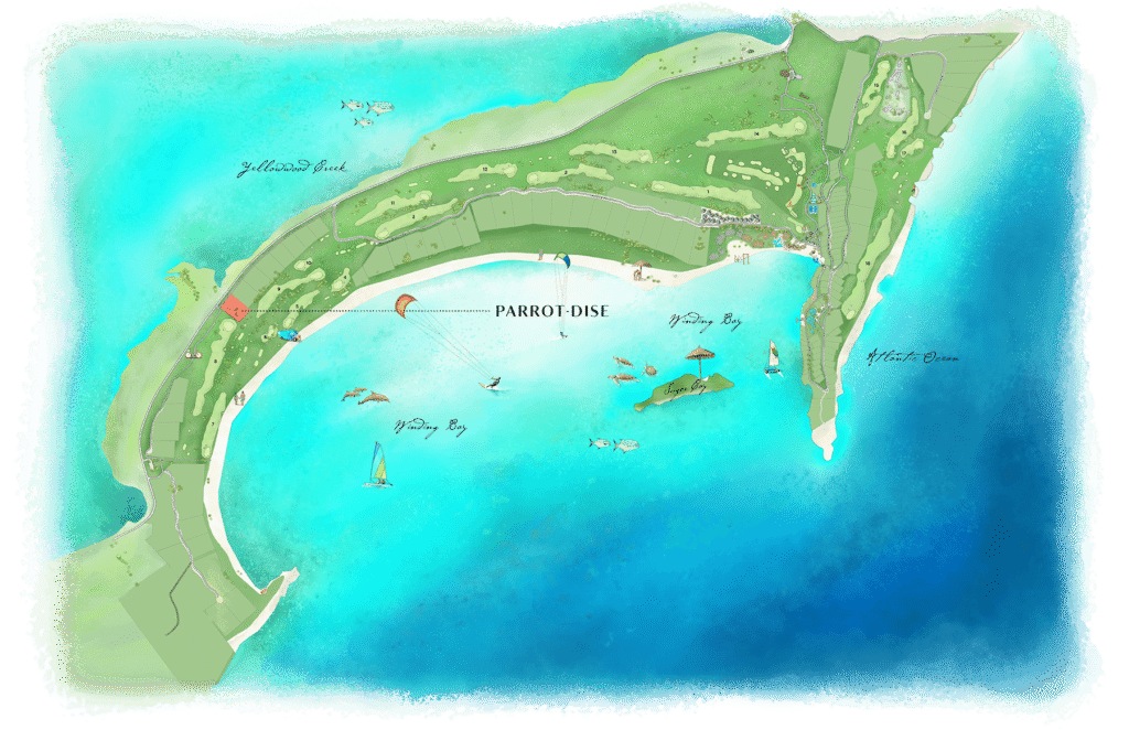A private 4,366-square-foot, centrally air conditioned estate with four bedrooms and 4.5 bathrooms, this Estate Home is situated on the 8th green of the island links golf course and offers stunning views of Winding Bay and the pristine 2 -mile beach from almost every room in the house. A wonderful flowing floor plan draws you into the great room of this beautiful estate home with a dramatic vaulted ceiling and a wall of windows. French doors lead out to the expansive covered decks on both sides of the house. You’ll enjoy breathtaking views of the beach, golf course and Winding Bay through one window and the famous fishing Marls of Winding Bay through another window. It’s the perfect spot to enjoy the tropical surrounding.